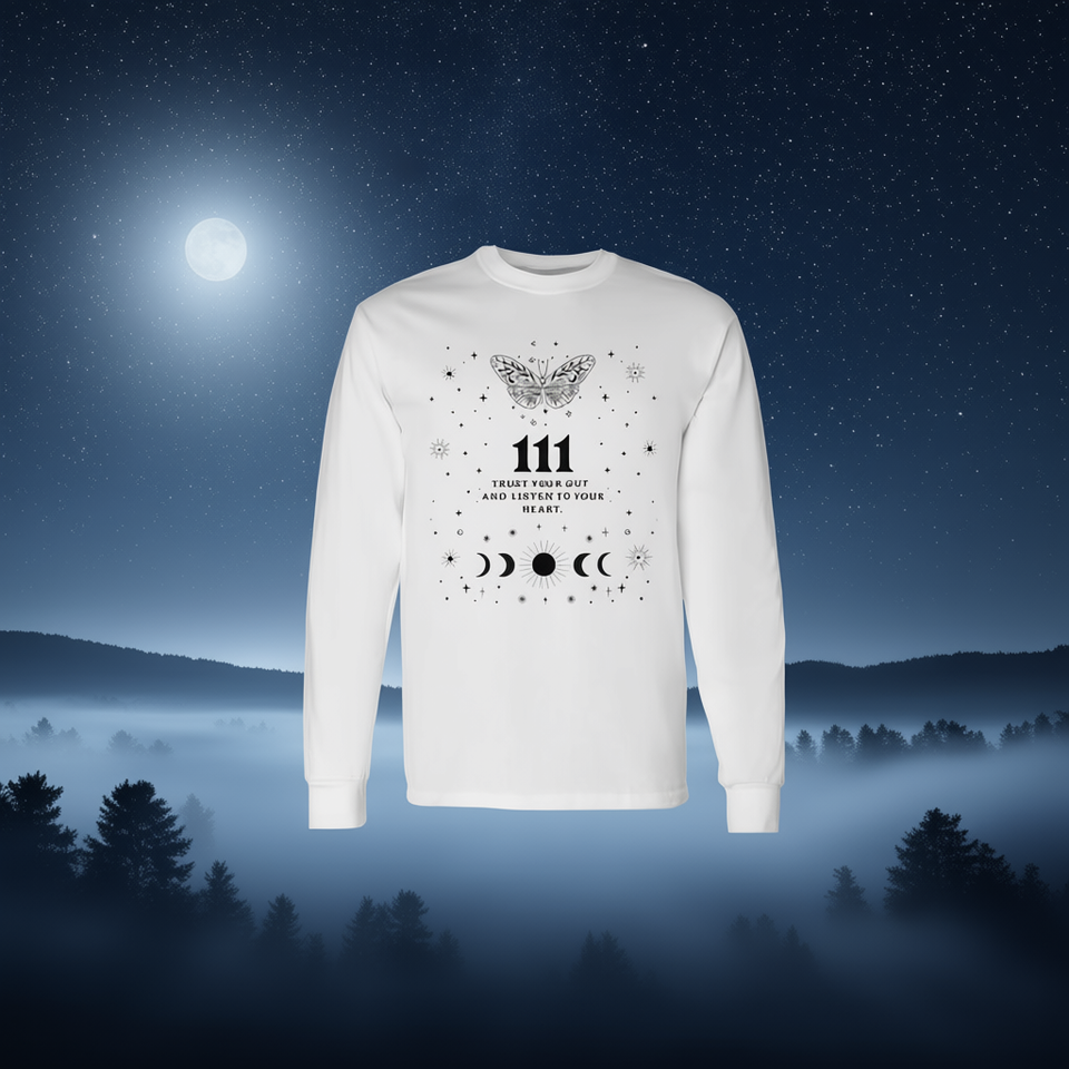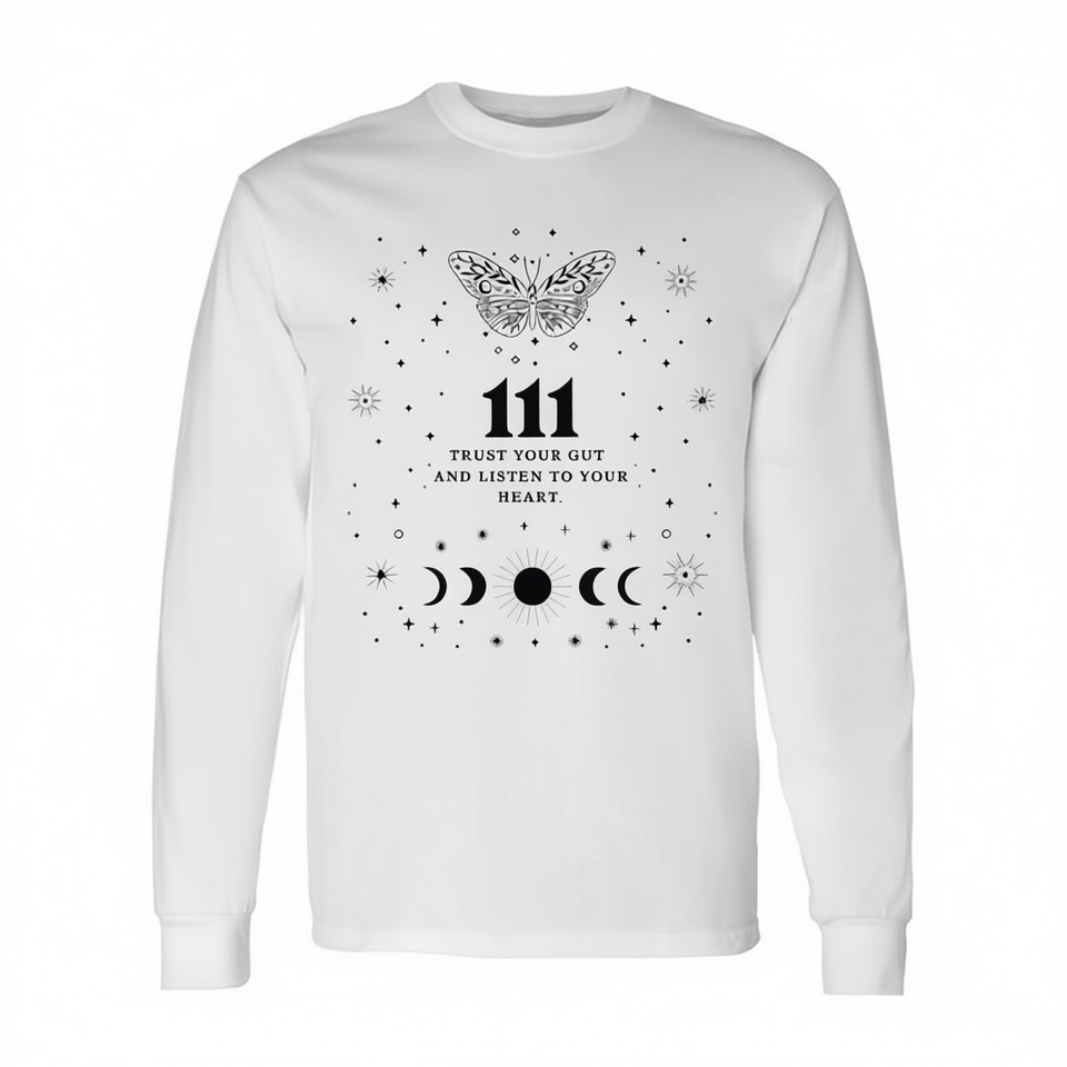 T-shirt à manches longues Angel Number 111, design papillon et phases de lune, vêtements inspirés de la spiritualité