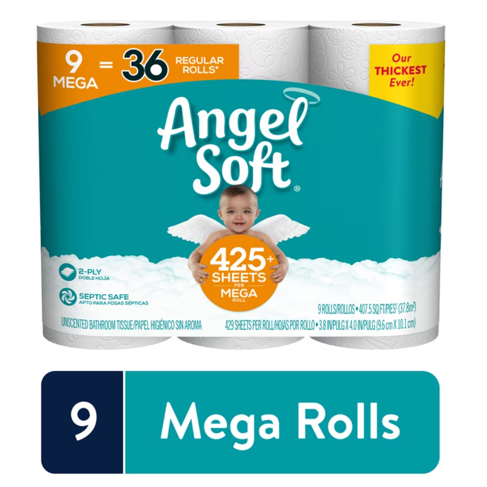 Angel Soft Household Embossed 2-Ply Pulp Septic Safe Papier hygiénique non parfumé Rouleaux de 9 fils
