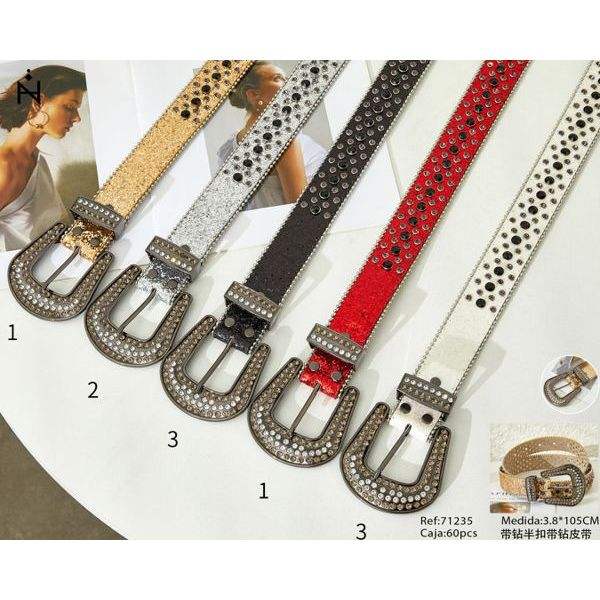 Ceinture en cuir demi-boucle Angelina avec strass 3,8x105cm, ceinture décontractée tendance pour femme