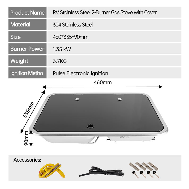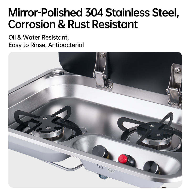 Disposition coudée 2 brûleurs en acier inoxydable RV Cuisinière à gaz intégrée pour camping-car Table de cuisson pour van caravane camping-car Cuisine