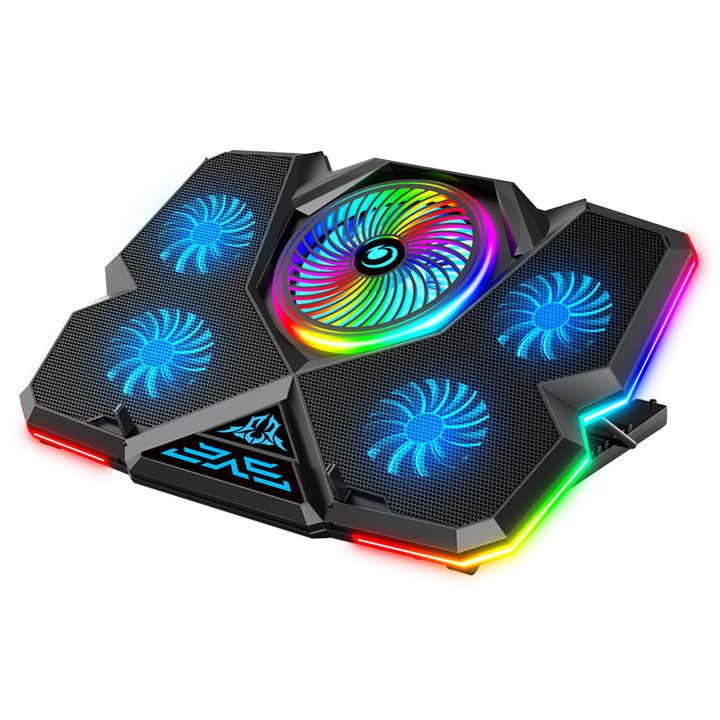 Refroidissement pour ordinateur portable RGB, 60 Angles réglables, paf avec support de téléphone, 5 ventilateurs, support robuste pour refroidissement