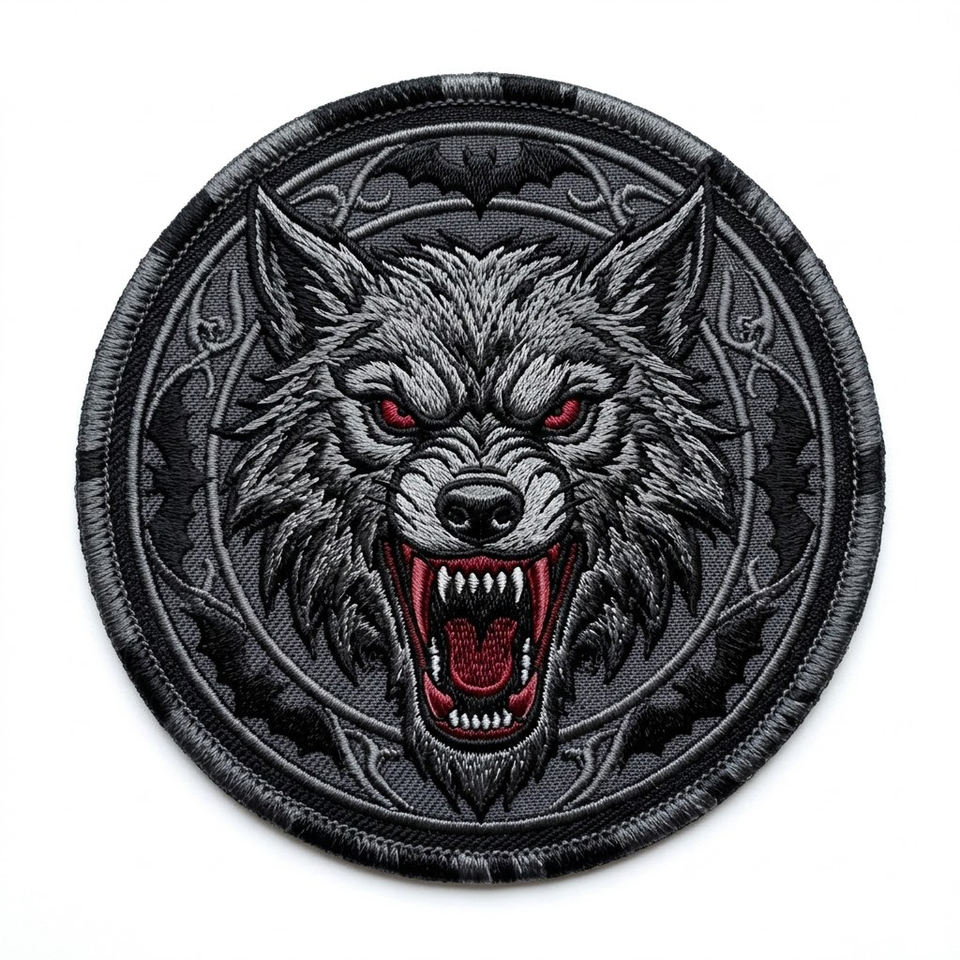 Patch thermocollant brodé Tête de loup-garou colérique, badge rond gothique pour motard, applique personnalisée en gros pour vestes en cuir
