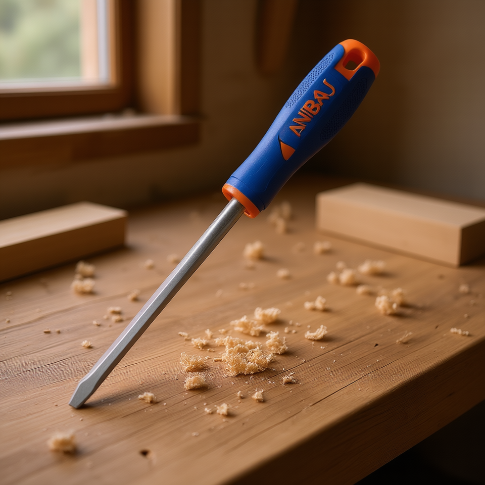 Ciseau à sculpter Anibau, pointe droite en acier, outil de sculpture sur bois de qualité industrielle, poignée antidérapante, prise en main texturée