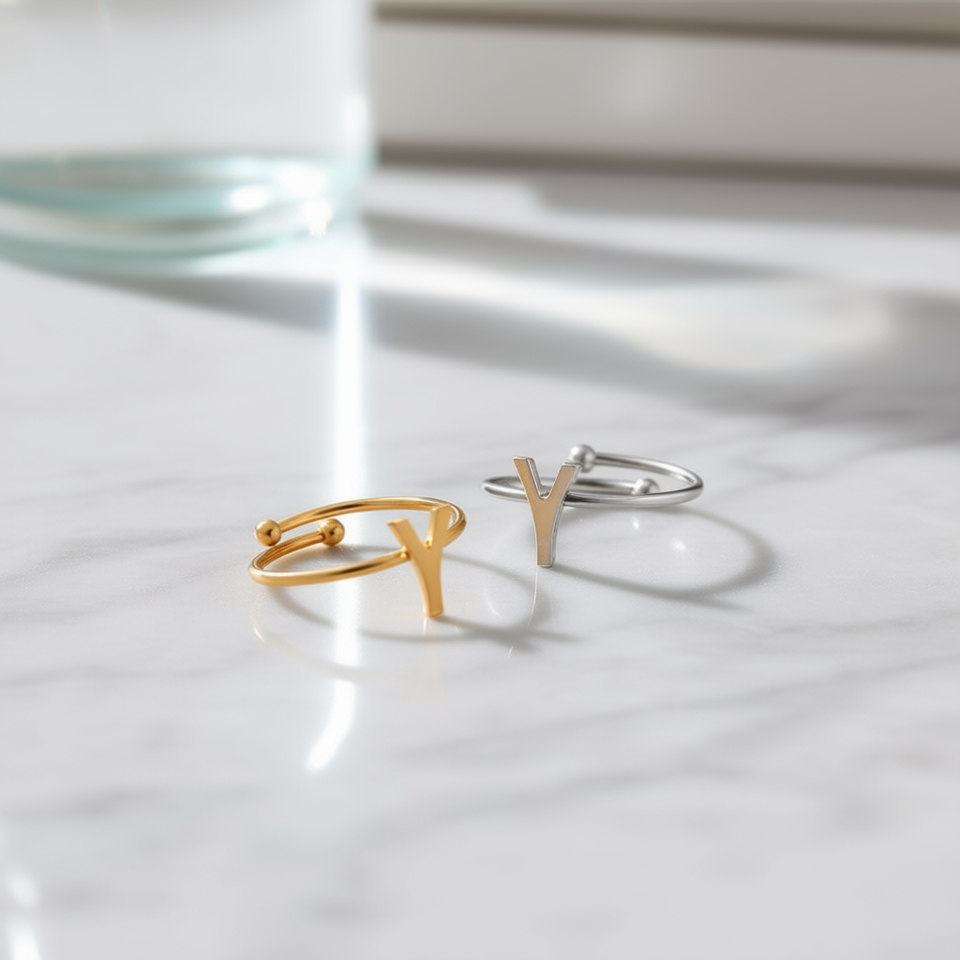Bague Lettre Y Angelina en Acier Inoxydable Plaqué Or et Argent, Bijou Unisexe Tendance, Cadeau Quotidien, Style Mode