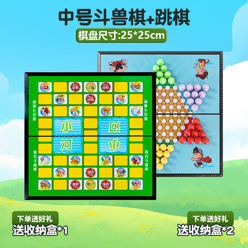Jeu d'échecs animalier pour élèves du primaire, plateau magnétique en plastique, jeux éducatifs pour enfants, grande taille, dames pliantes volantes
