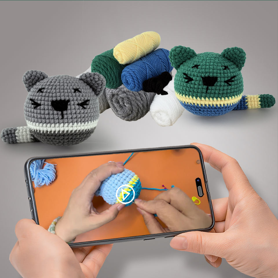 Kit de crochet pour débutants - Créez un adorable chat, kit de démarrage complet avec outils et tutoriel vidéo, 2 choix de couleurs, prêt à offrir