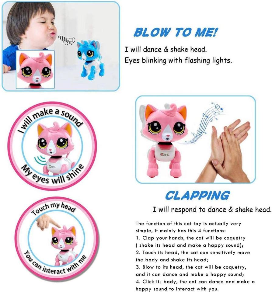 Jouet robot interactif électrique pour animaux, robot chat qui marche et danse avec musique électronique et compagnon pour animaux de compagnie pour les filles, plaisir de jeu