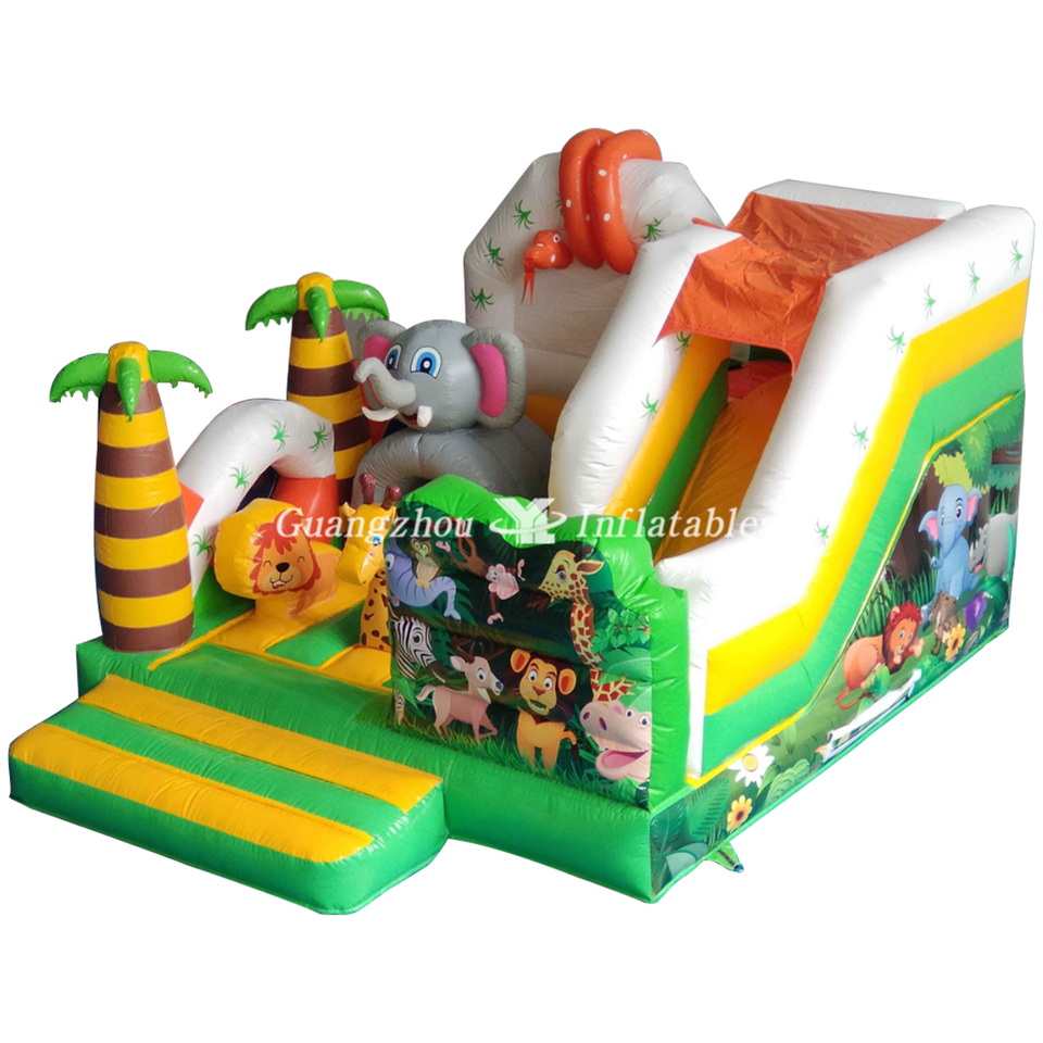 Animal Jungle Combo Inflatable Trampoline Slide Bounce House Bouncer Slide Inflatable Children Air Bouncer Slide Castle Barrier