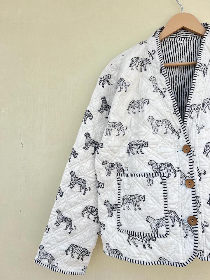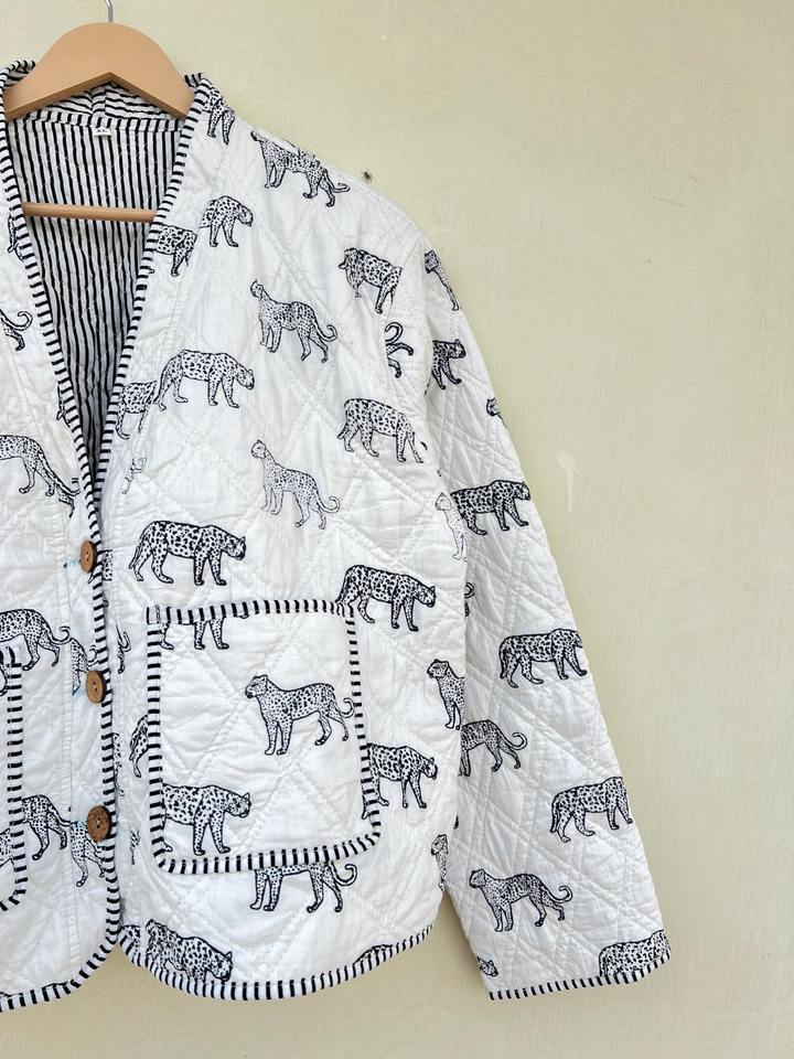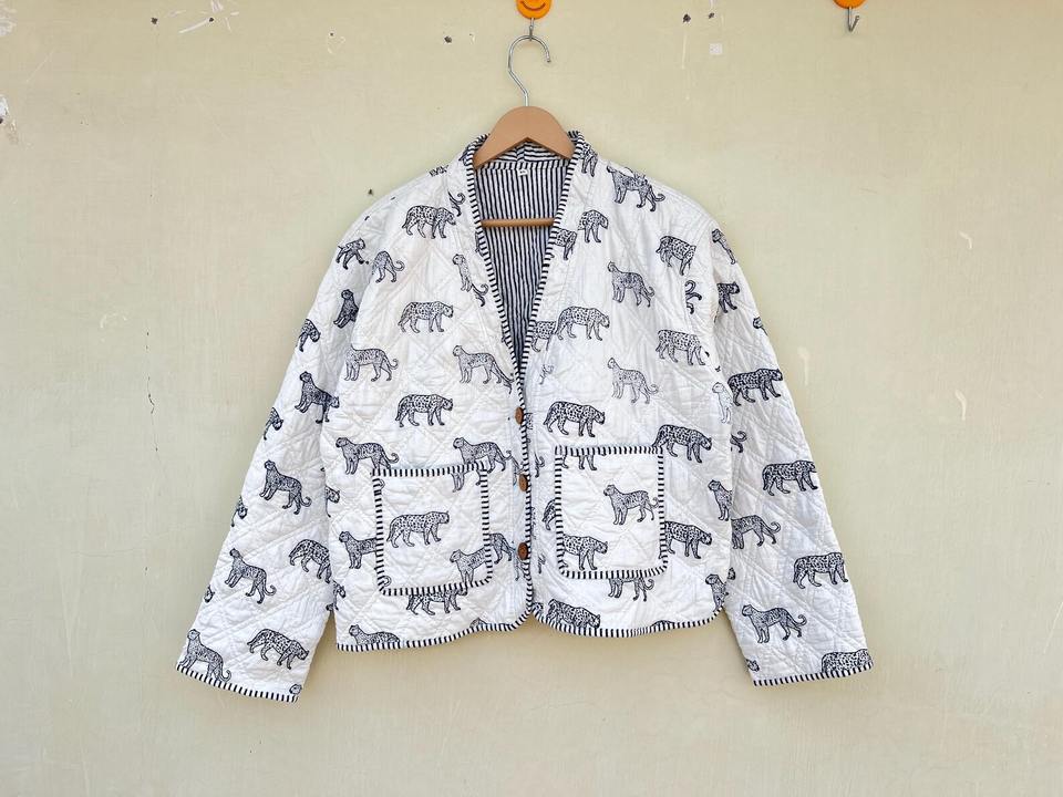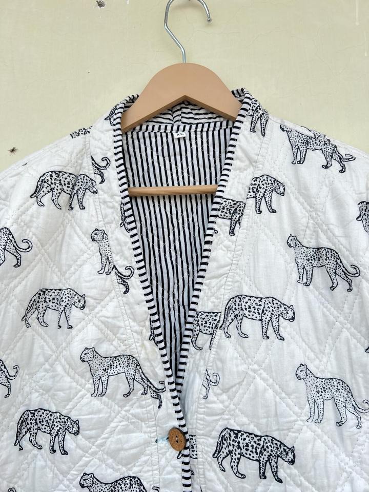 Veste de style kimono animalier, faite à la main, imprimée au bloc, en coton indien, vêtements pour femmes, toutes saisons