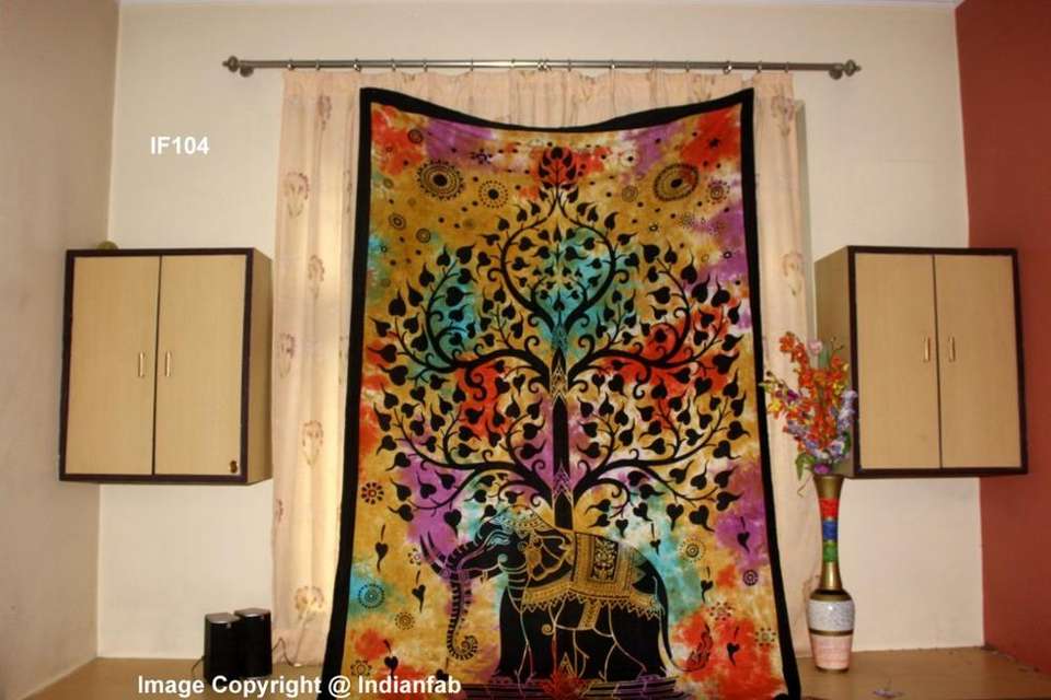 Imprimé animalier fait à la main belle tenture murale éléphant arbre tapisserie jumelle couvre-lit coton décoration intérieure par les expéditeurs indiens