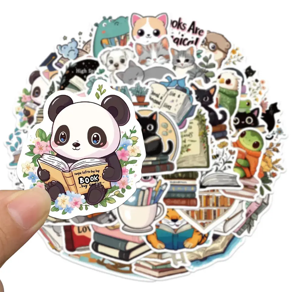 Ensemble d'autocollants animaux lisant un livre| Autocollant de ver de livre de 50 piècesNom du produit