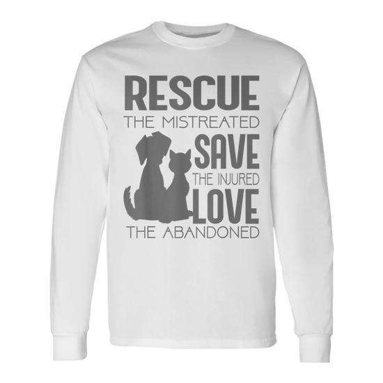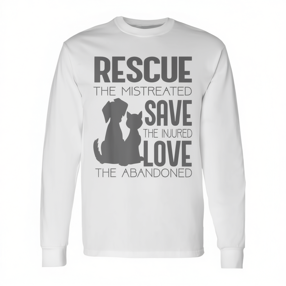 T-shirt à manches longues pour les amoureux des chiens et des chats 'Rescue Save Love' T-shirt promotionnel pour les propriétaires de chiens et de chats