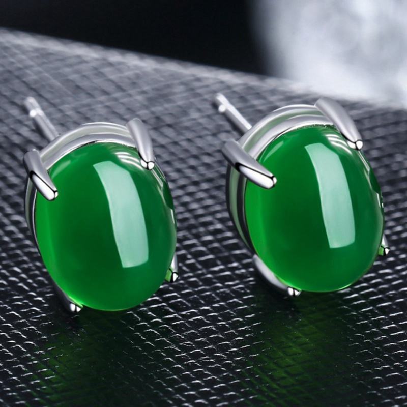 Anime Banana Fish Links Earrings Silver Stud Earrings for Fans Jewelry Green Elegant Gem Stone