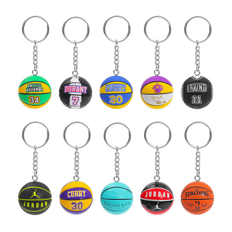 Porte-clés mini-basket-ball de dessin animé d'anime, pendentif en PVC, matériaux en caoutchouc, gaufrage, impression numérique, imperméable, souvenir, cadeau, clé