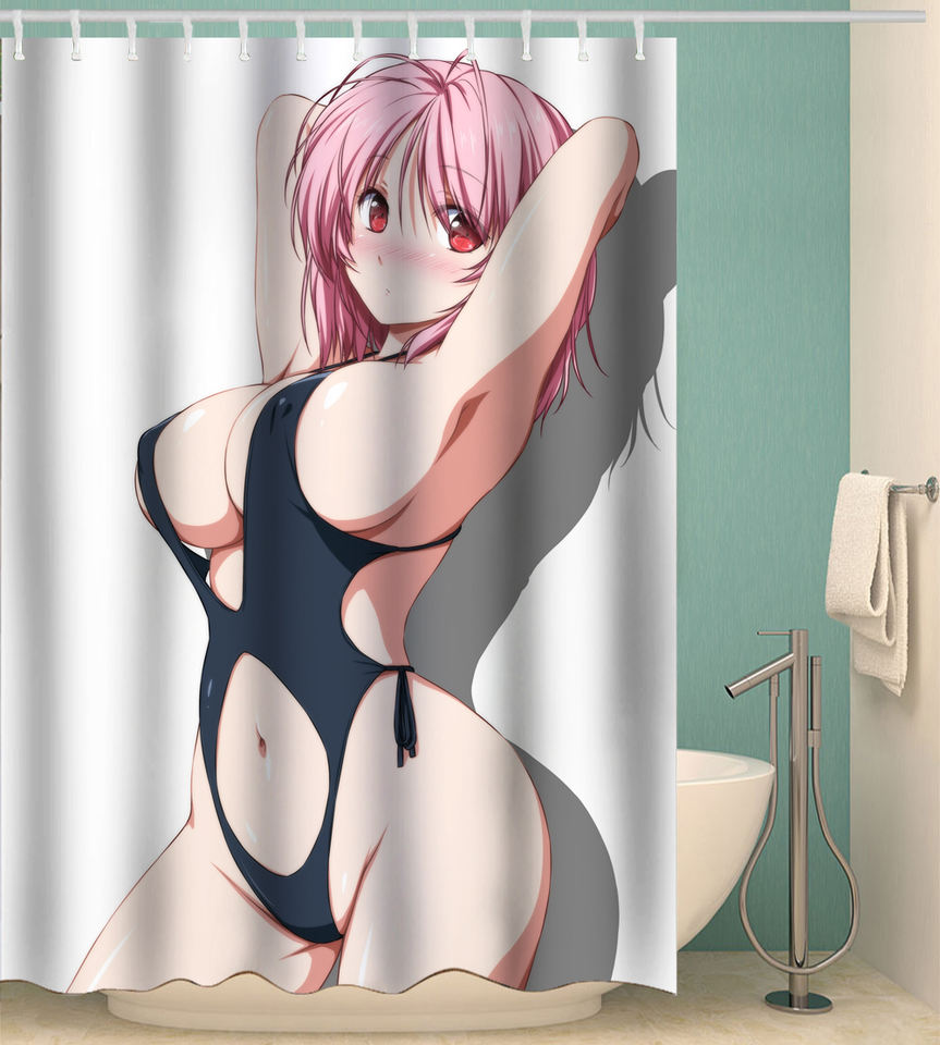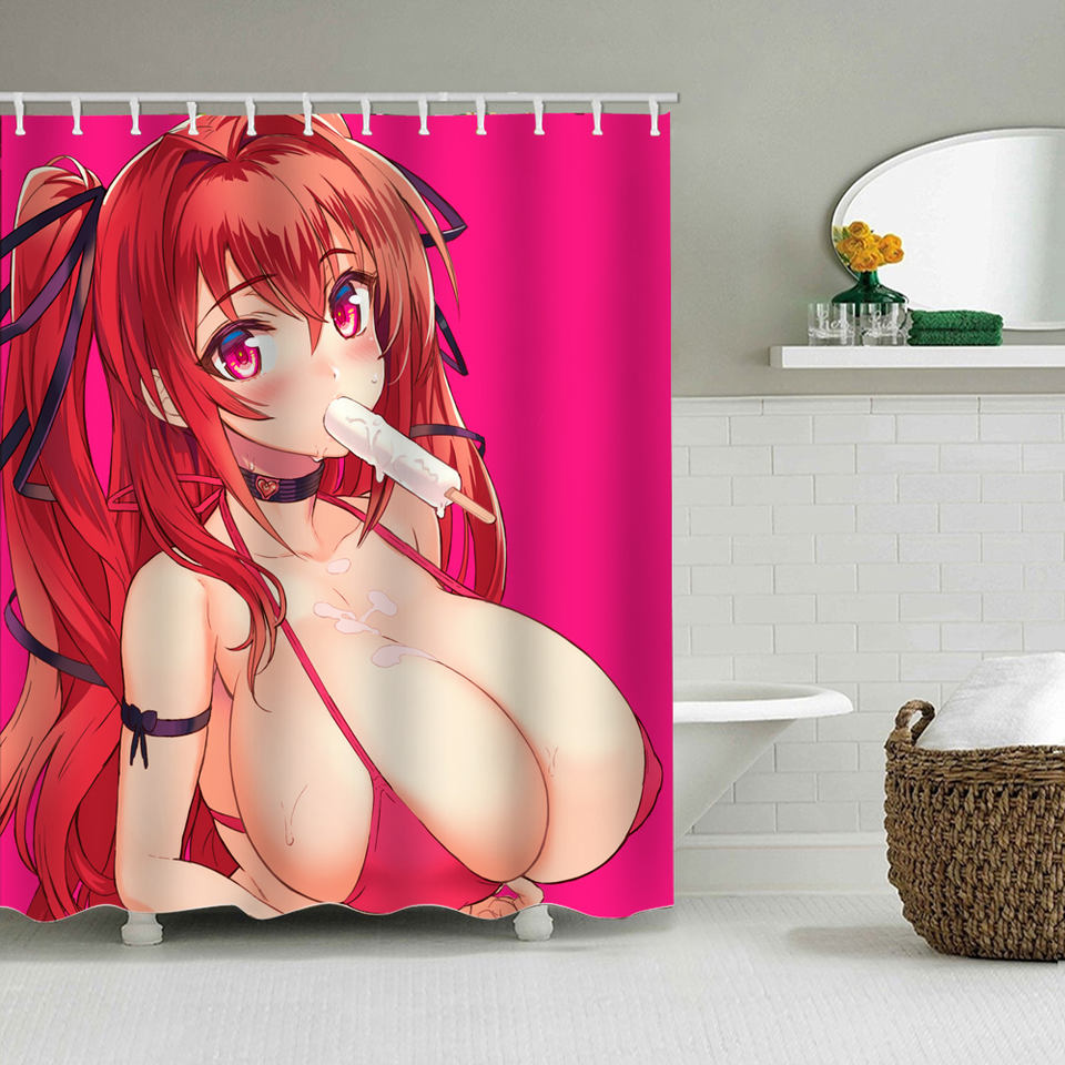 Rideau de douche imprimé avec une fille anime aux gros seins et fesses nues, de haute qualité, imperméable, décoration de salle de bain, crochet, accessoires de salle de bain
