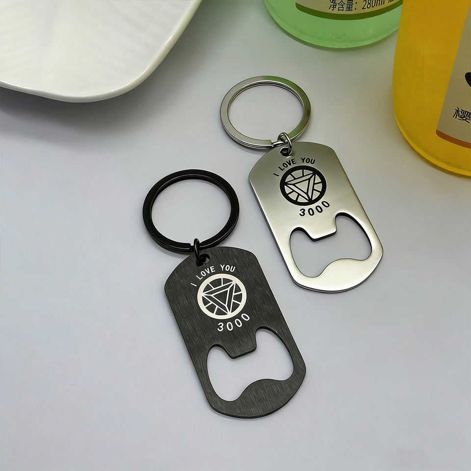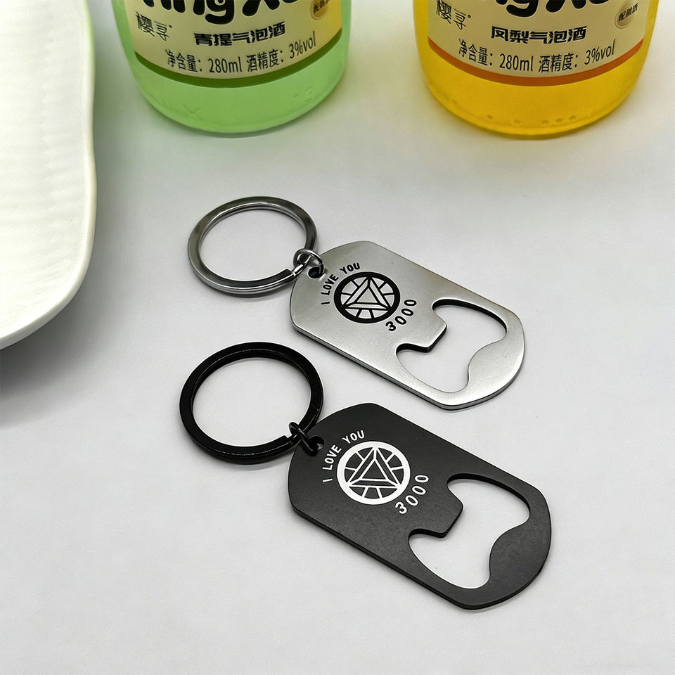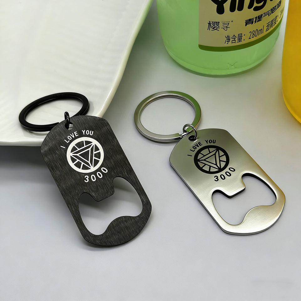 Porte-clés Anime en gros, décapsuleur en acier inoxydable, porte-clés personnalisé avec logo
