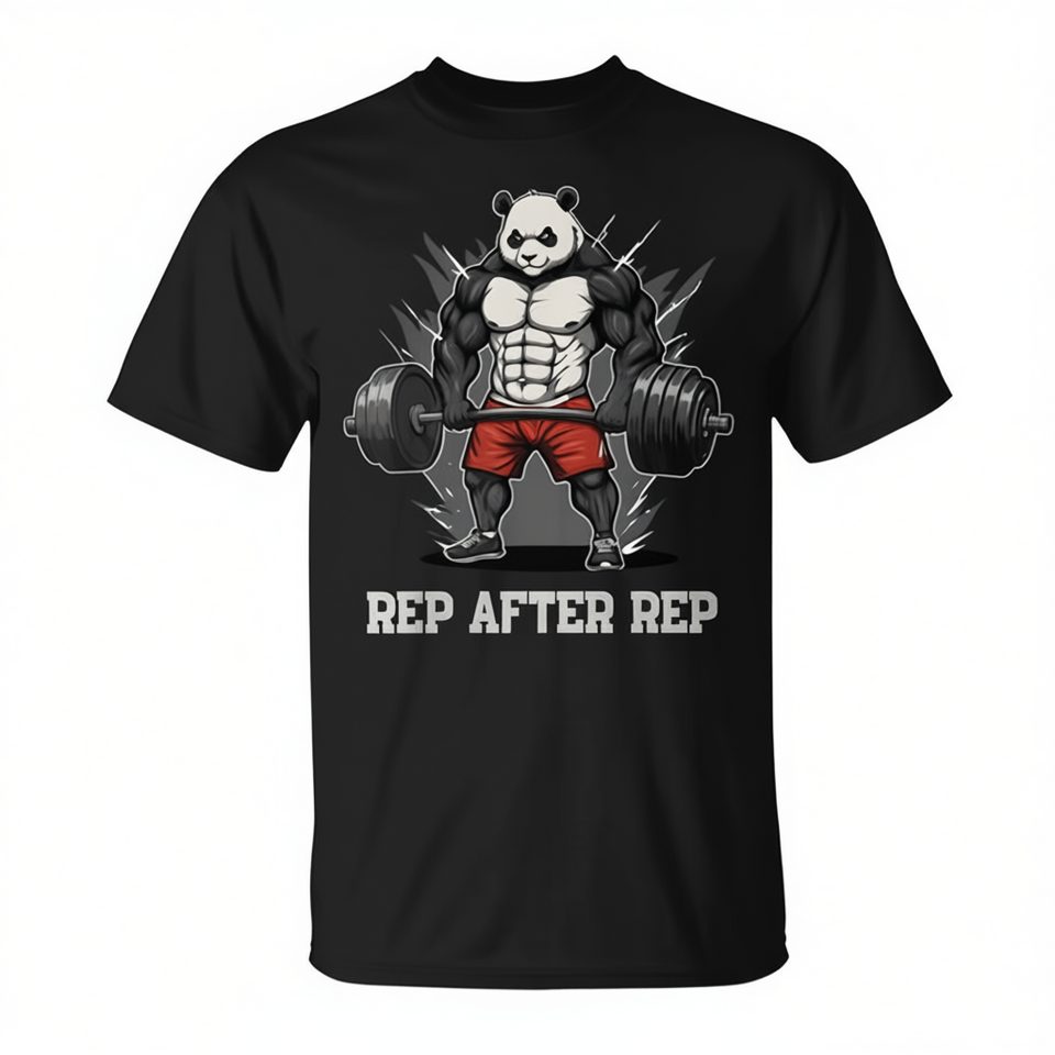 T-shirt de sport Anime Panda à col rond et manches courtes, imprimé sérigraphié motif Rep After Rep, noir, coupe homme