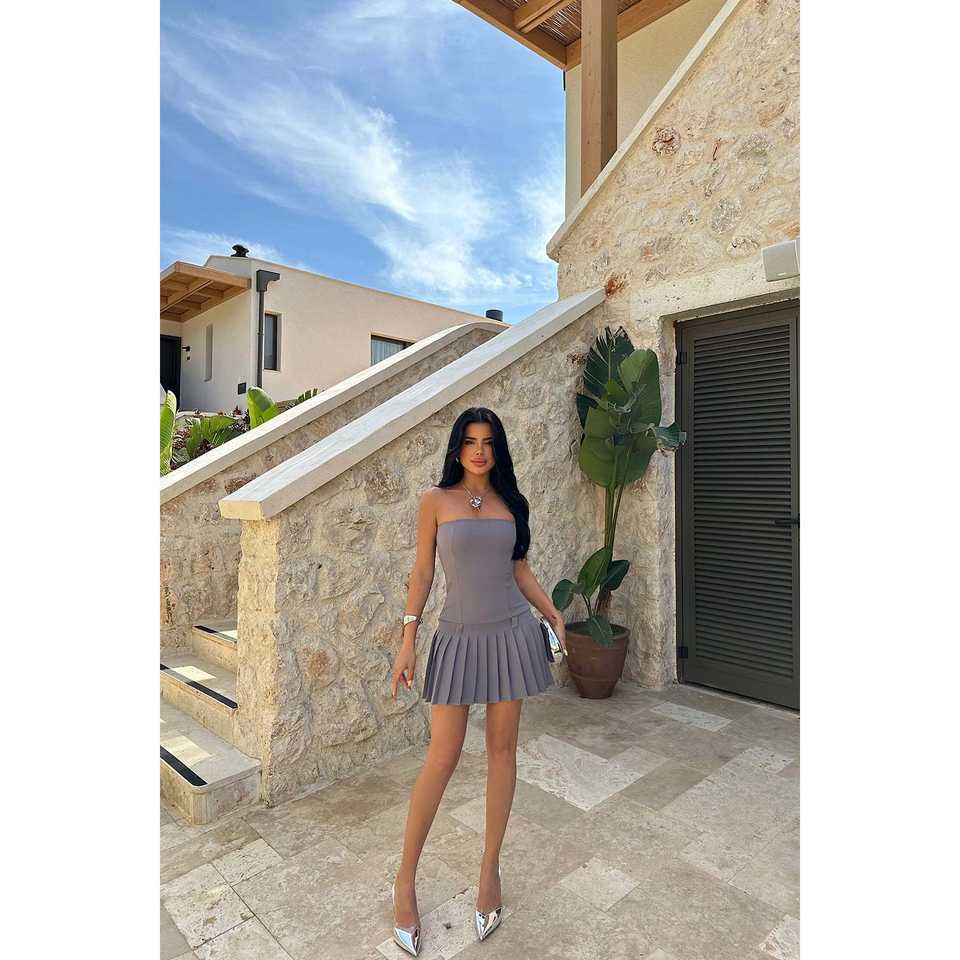 Anja Smoked Gray Mini Strapless Pleated Cocktail Dress