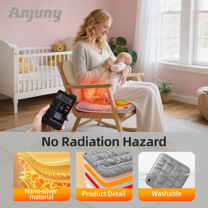 Siège chauffant en velours doux Anjuny USB OEM/ODM pour fauteuil roulant, coussin chauffant thérapeutique pour personnes âgées, housse amovible et lavable, mousse matelassée