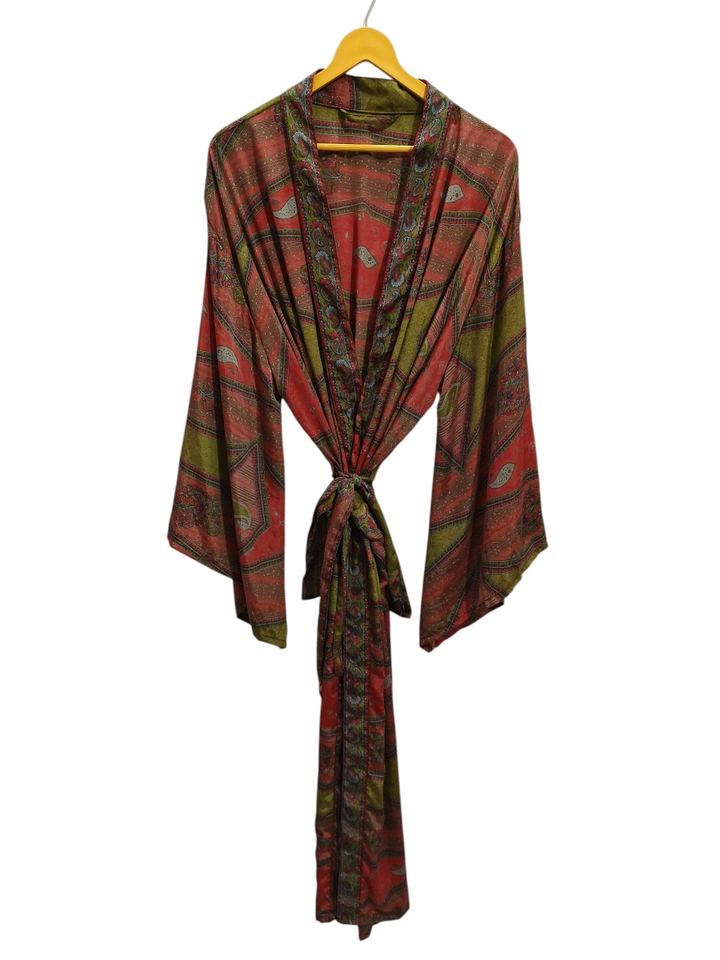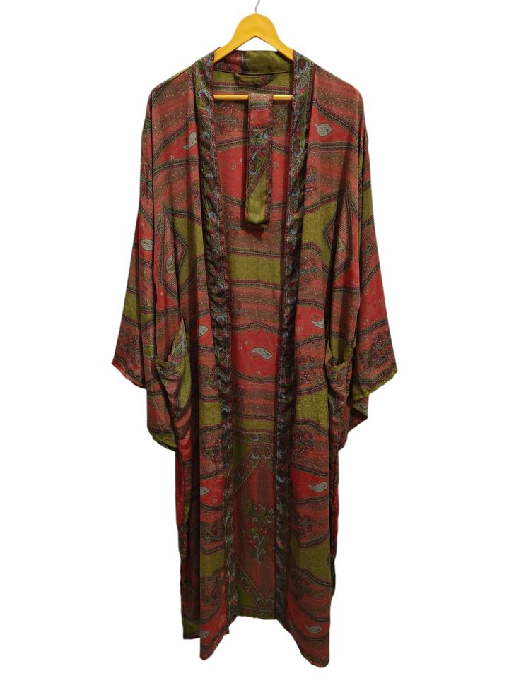 Ankle Length Silk Robe Multi Color Robe Night Wear Robe Indian Vintage Recycled Silk Sari Kimono,