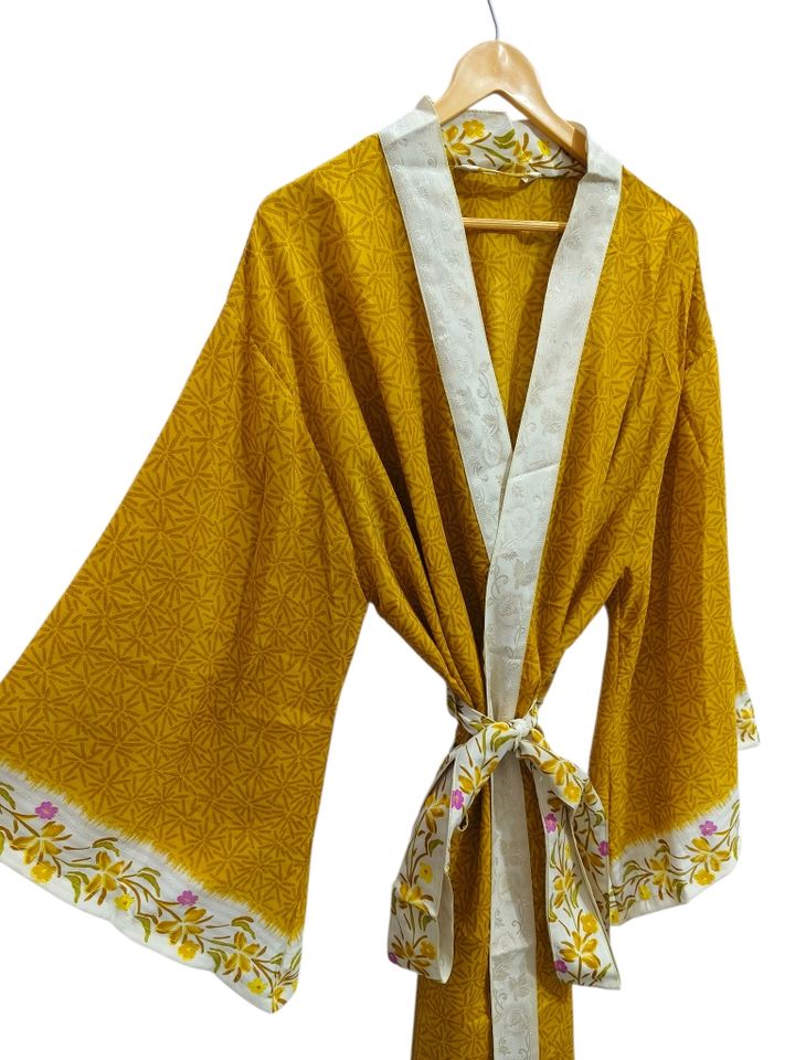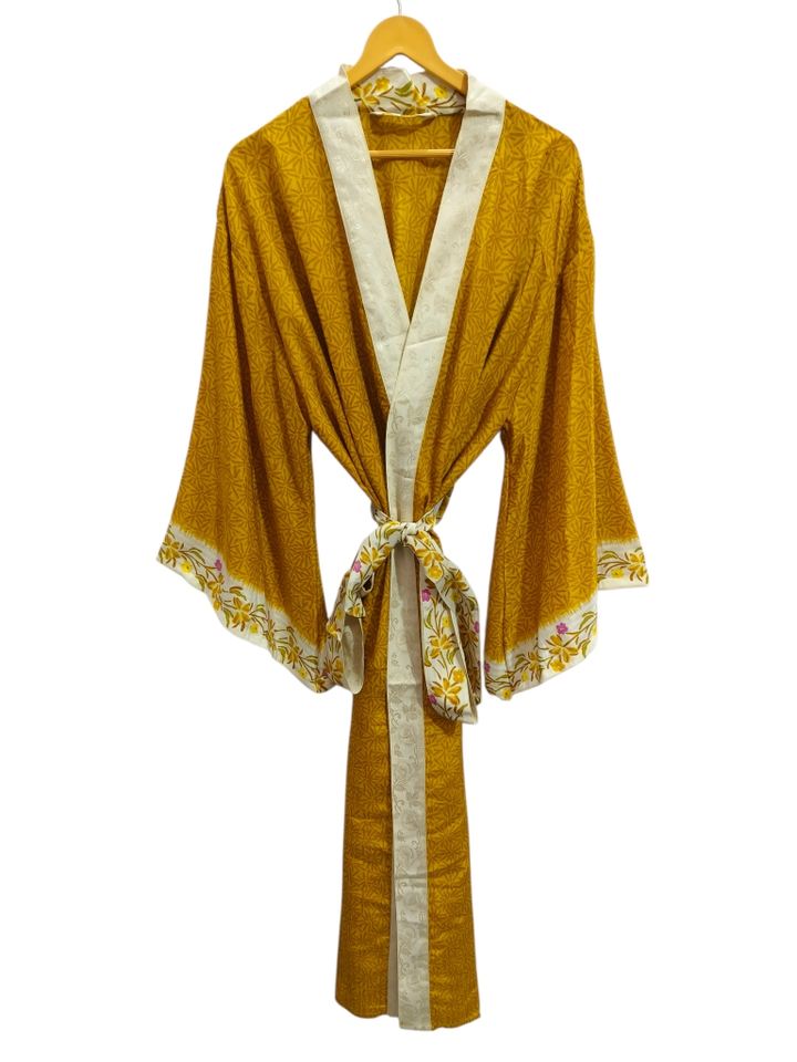 Robe en soie longue jusqu'aux chevilles, robe multicolores, robe de nuit, robe indienne vintage en soie recyclée, kimono en sari