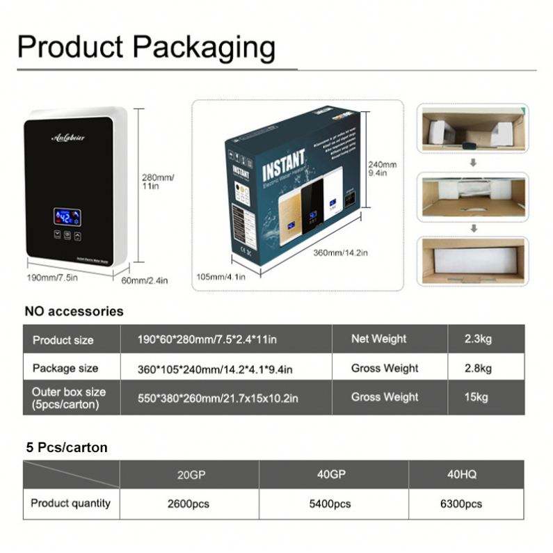 Anlabeier 5500W Mini geyser électrique sans réservoir chauffe-eau domestique multipoint Écran LED à distance Offre Spéciale plastique