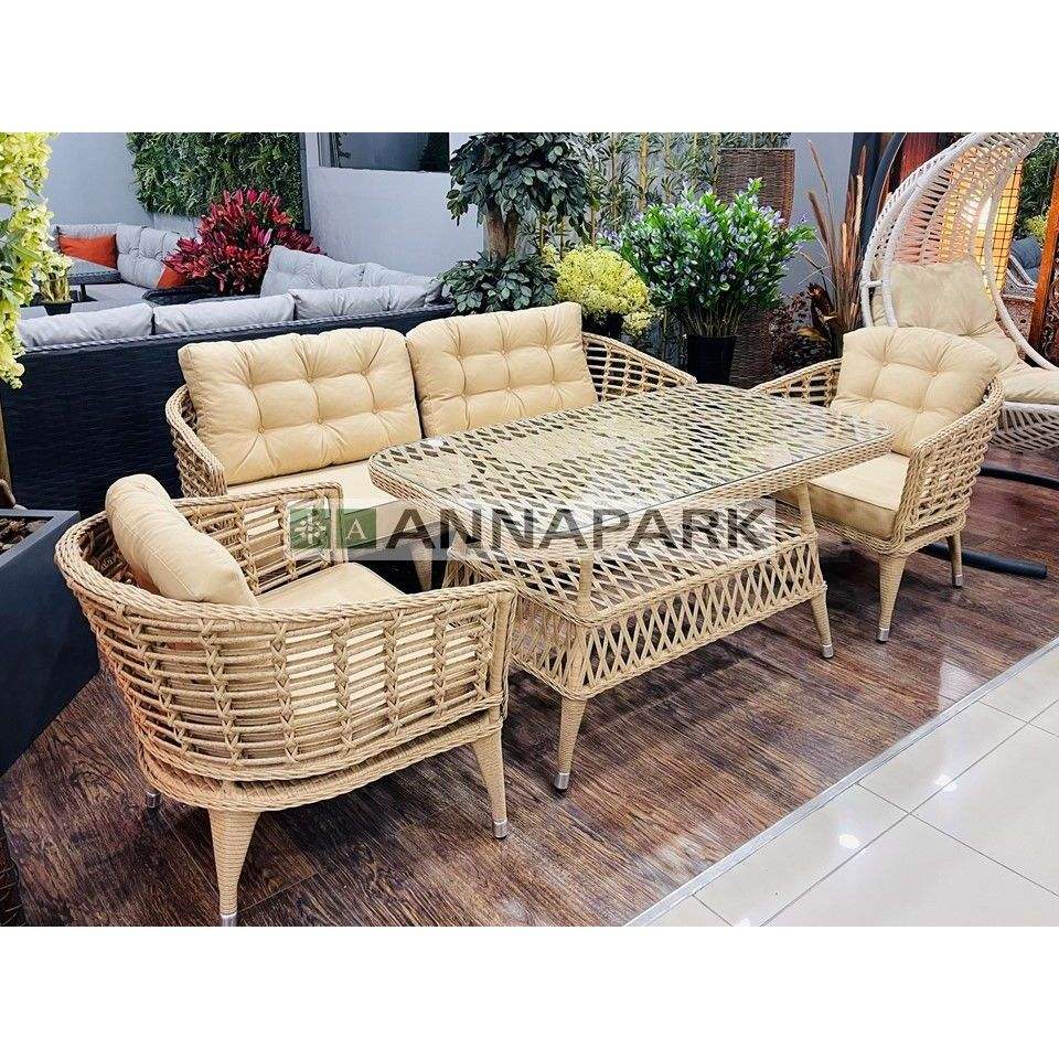 Annapark Shangrila Modern Outdoor Garden Dining Sets with Rattan Teak Aluminum Frame