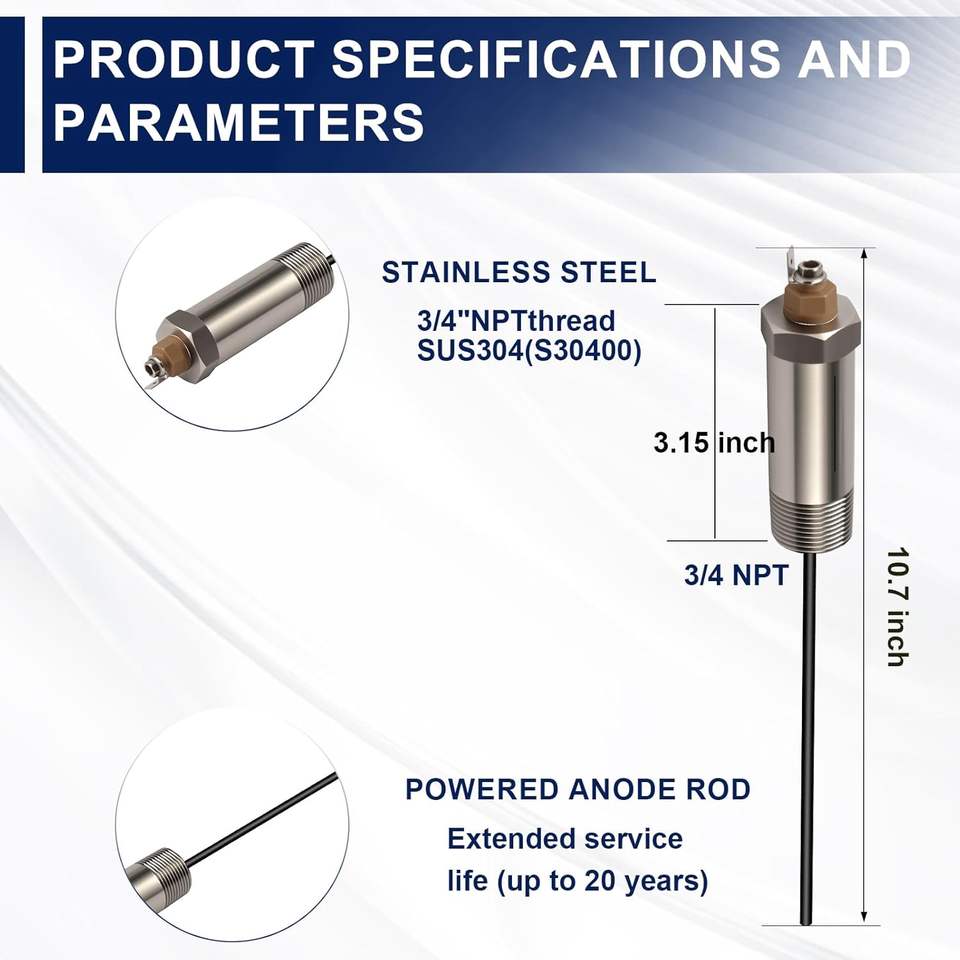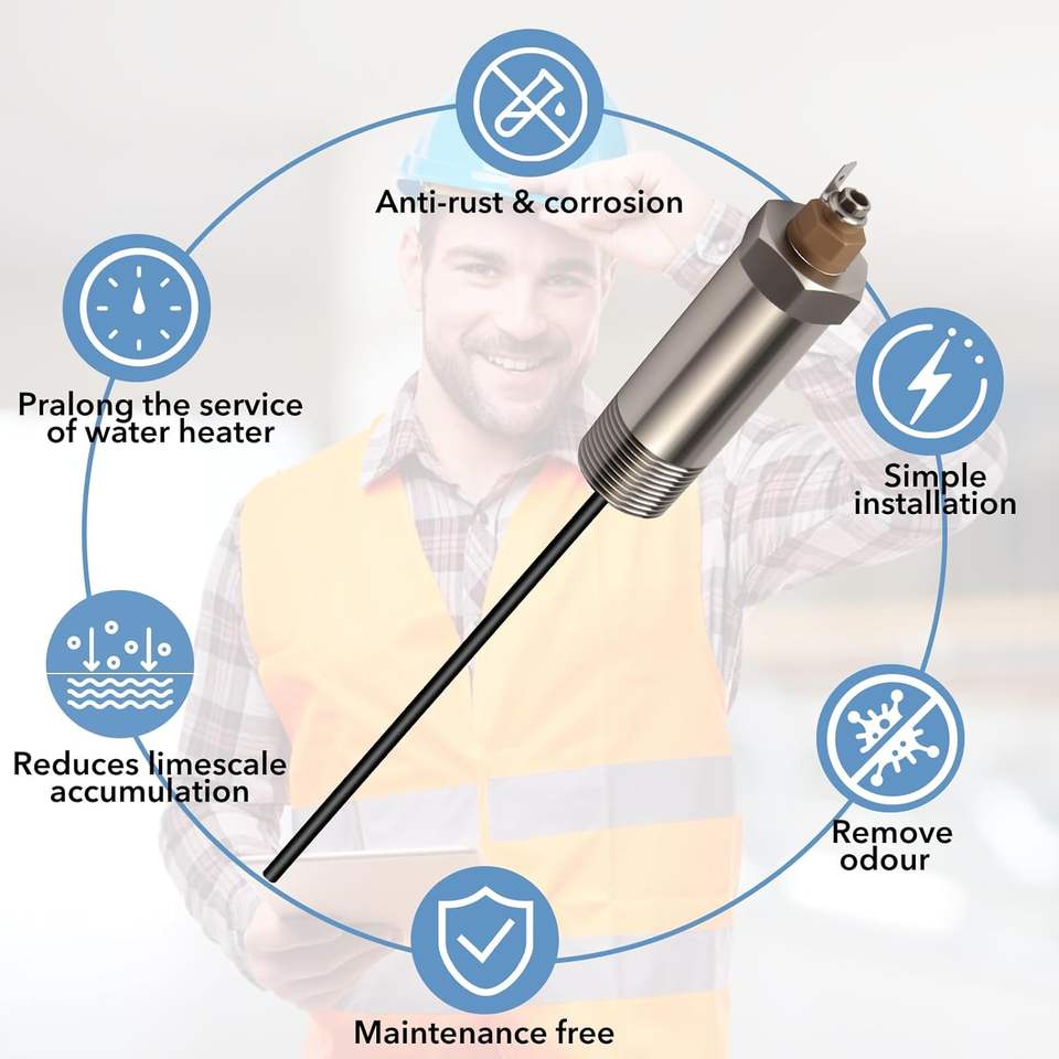 Anode en titane (avec support) pour chauffe-eau (réservoir de 10 à 45 gallons) – Anti-rouille, réduit le calcaire, élimine les odeurs