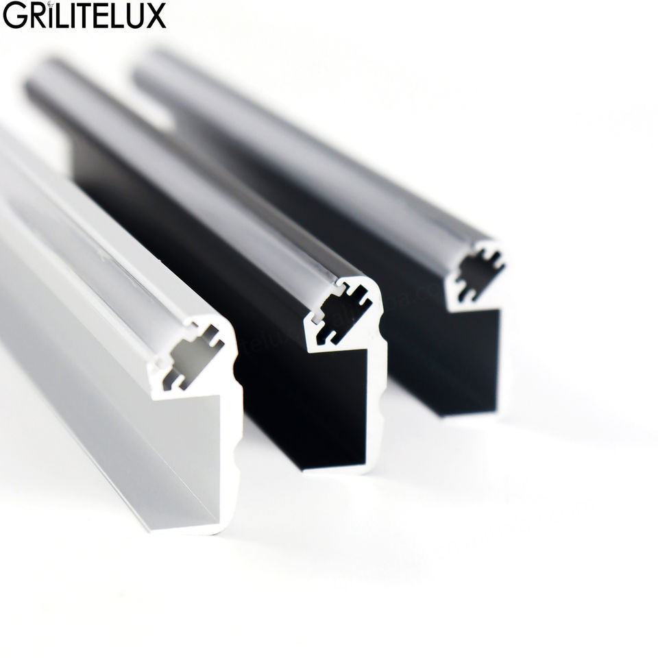 Profilé en aluminium anodisé à 45 degrés avec pince pour LED, montage en bordure pour éclairage angulaire dans les vitrines de meubles