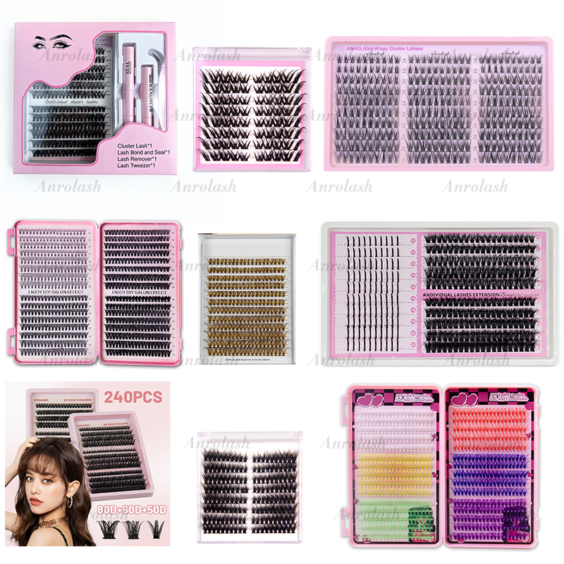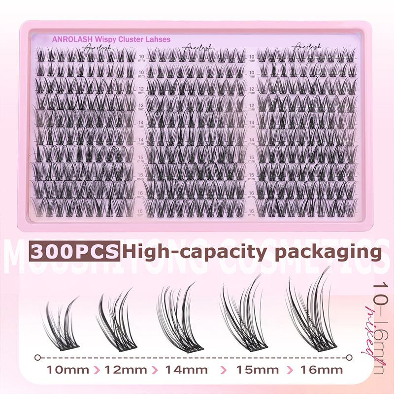 Anrolash Kit de Cils en Grappes Naturels Faits Main Effilés, 300 Pièces, 10-16mm Courbe C, Extensions de Cils Individuels, Kit de Cils Éventail DIY