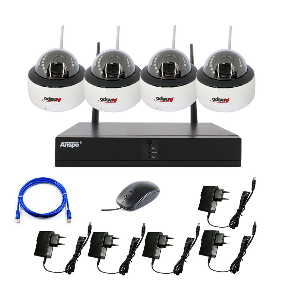 Anspo 4ch 3.0MP Kit de caméras de sécurité sans fil CCTV avec enregistreur NVR de haute qualité IP WIFI Dome night visio