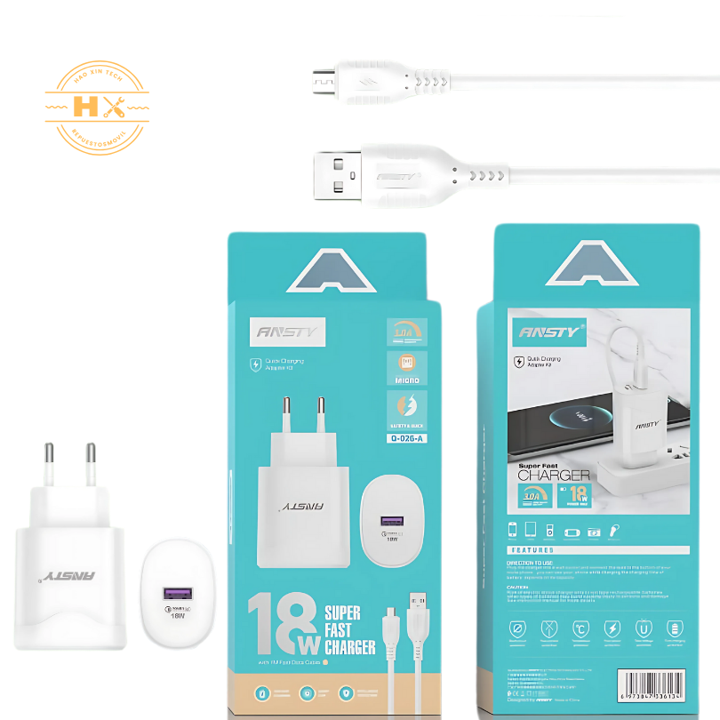 Chargeur USB-Micro rapide Ansty Q-026-A 18W, adaptateur de charge haute efficacité