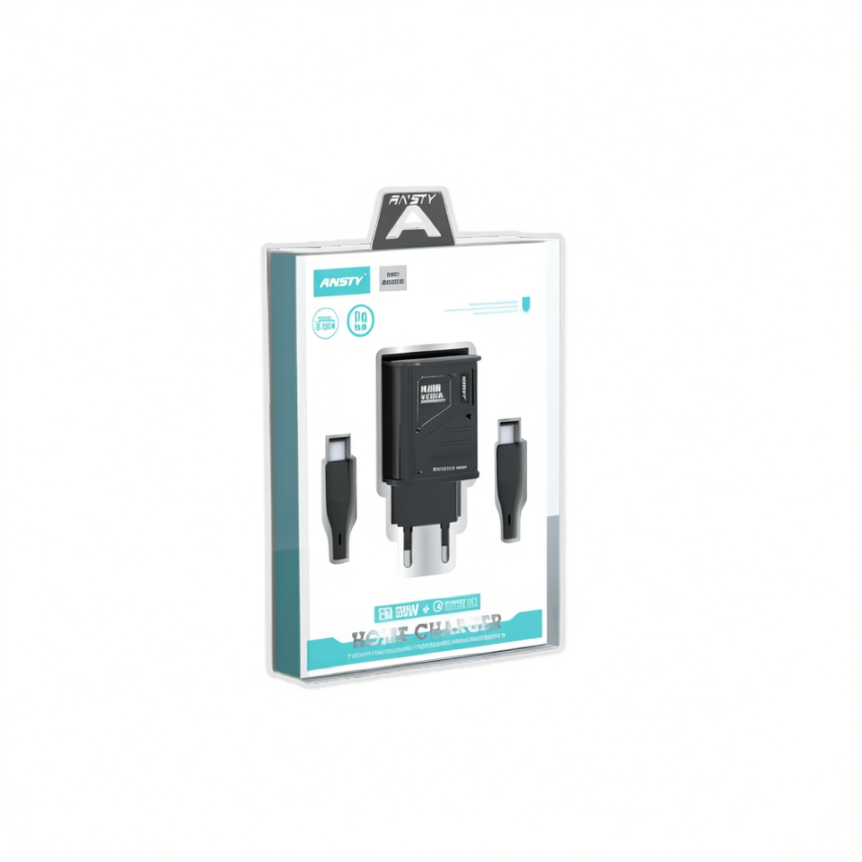 Adaptateurs de voyage à charge rapide double port Ansty Q-034 38W avec câble C-C noir