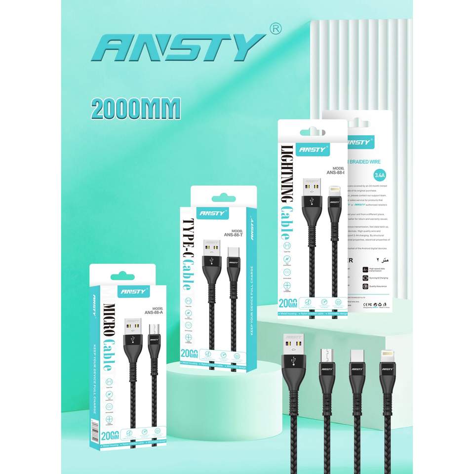 Câble de type C Ansty 2000 mm, câble de charge rapide tressé, câble de données