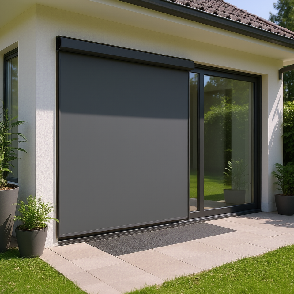 Auvent latéral rétractable pour porte, 63 po x 393,7 po, polyester anthracite, design minimaliste, facile à installer
