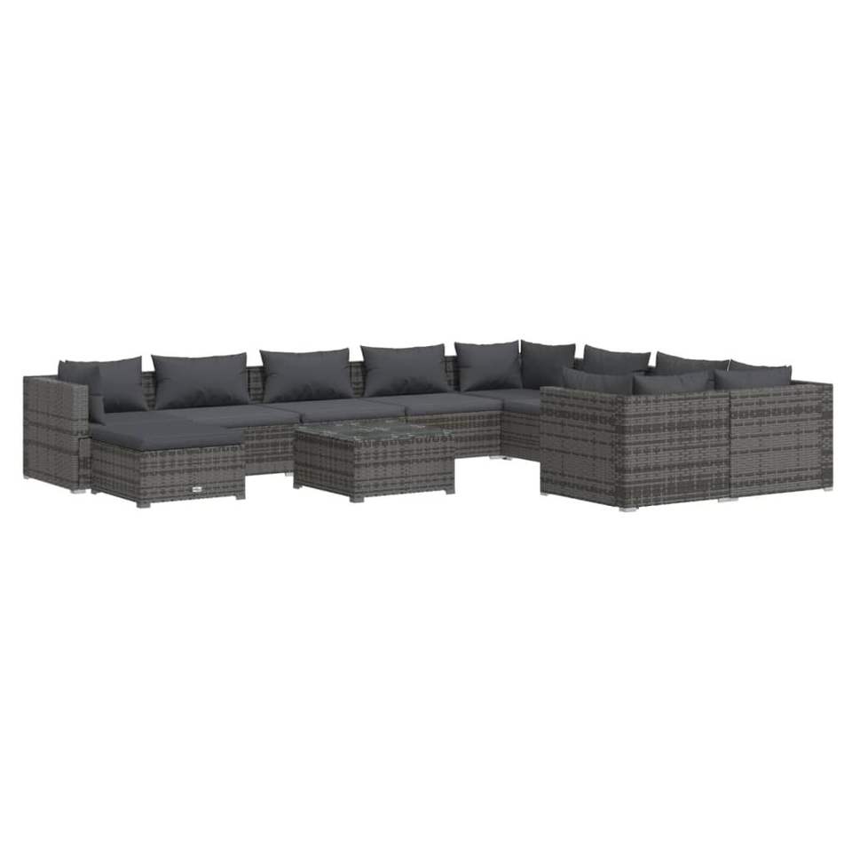 Ensemble de salon de jardin en polyrotin gris anthracite avec coussins