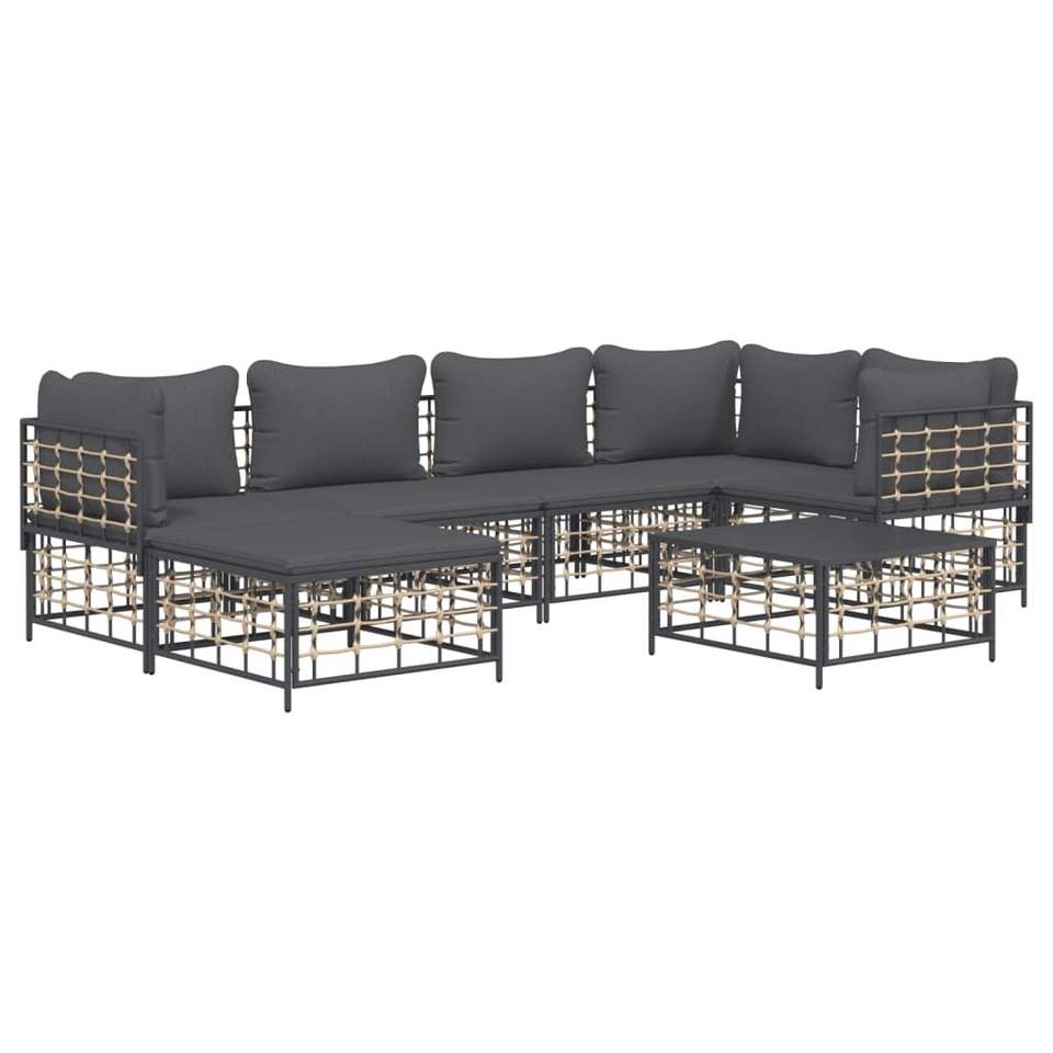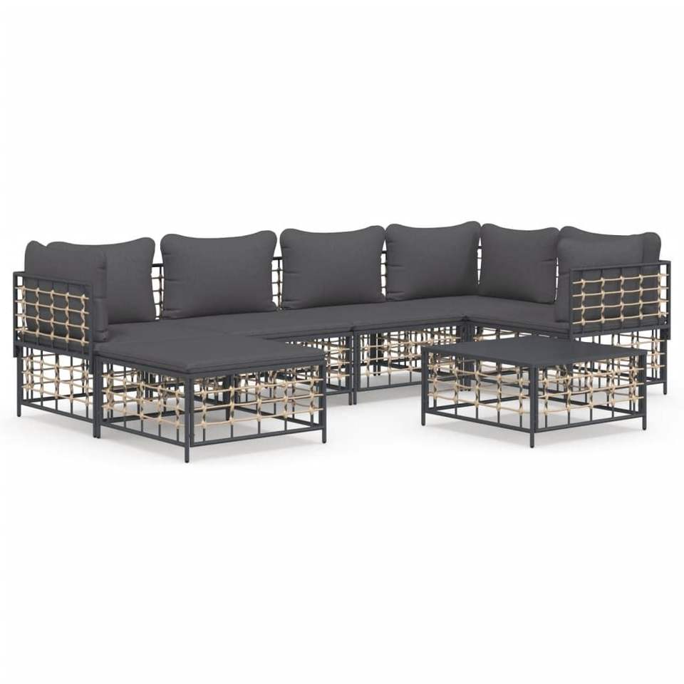Ensemble de salon de jardin anthracite avec structure en métal et coussins, 6 places, mobilier d'extérieur au design contemporain