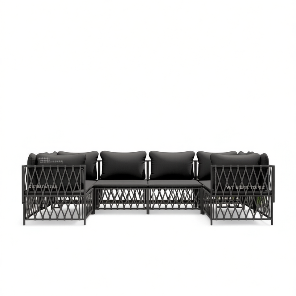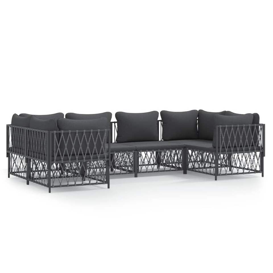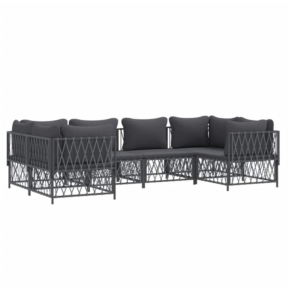 Ensemble de salon de jardin anthracite, structure métallique, résistant aux intempéries, mobilier d'extérieur 6 places, design contemporain