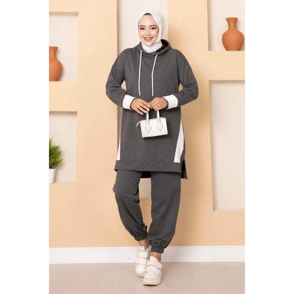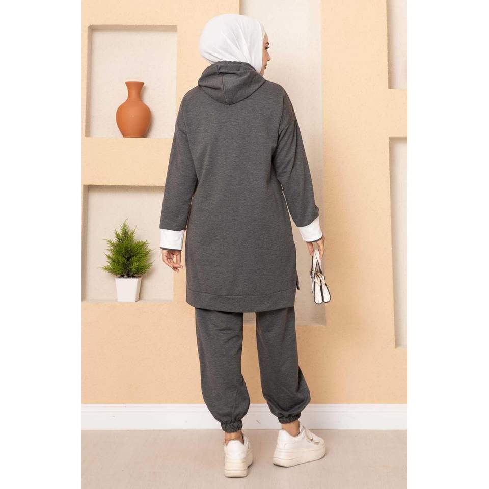 Survêtement Hijab anthracite à capuche détaillé Ensembles modestes Produit
