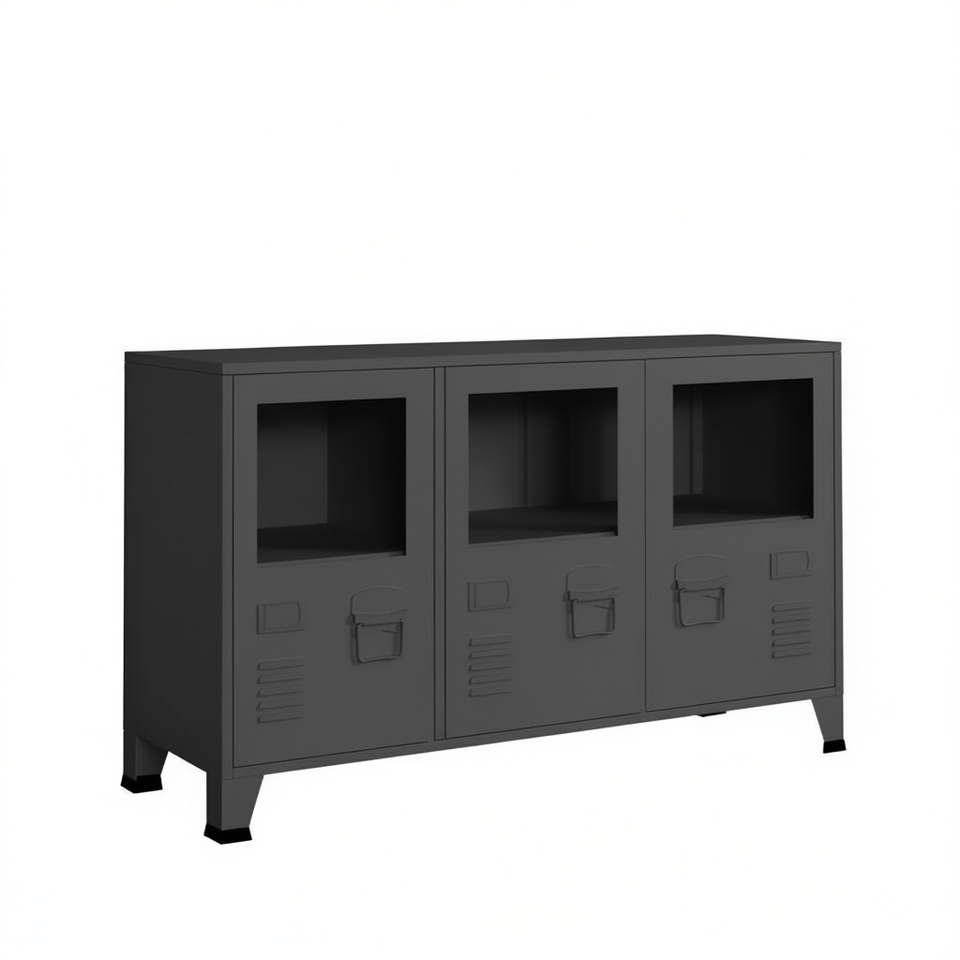 Buffet en métal anthracite, moyen, rectangulaire, style industriel, meuble de rangement pour la maison, armoire de salle à manger