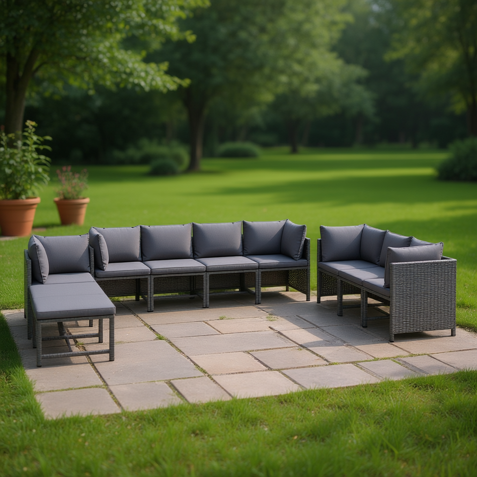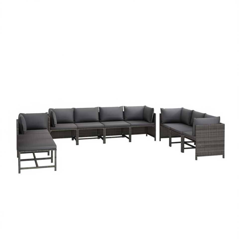 Ensemble de salon de jardin en rotin anthracite gris 10 places, mobilier d'extérieur contemporain résistant aux intempéries