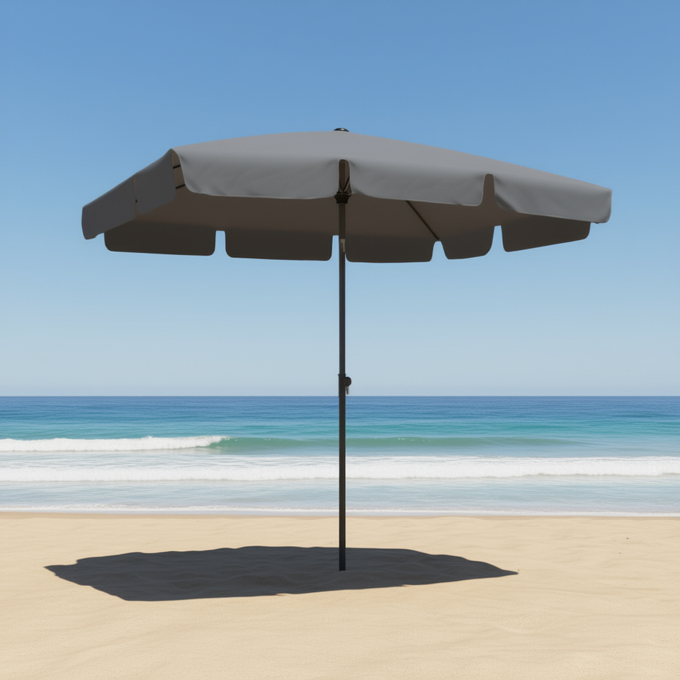 Grand parasol de plage anthracite en polyester résistant aux UV, protection solaire, parasol d'extérieur