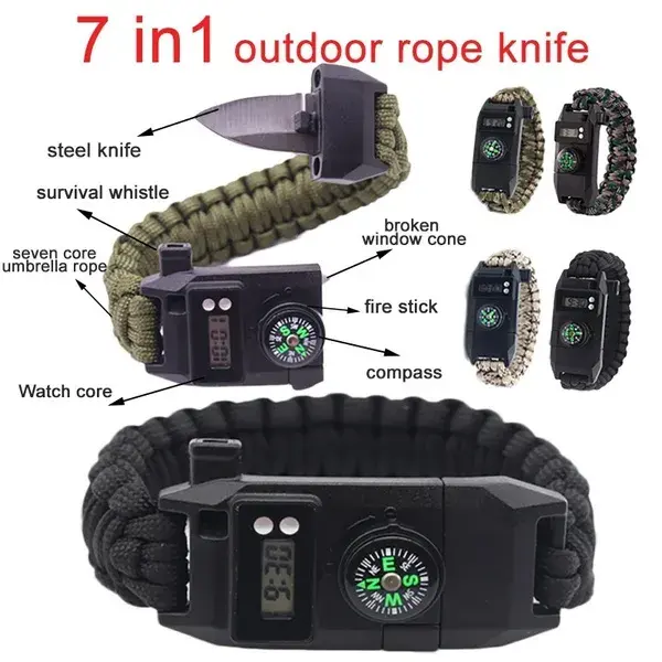 Paracorde Parachute/Montre Digitale Allume-feu à Pierre/Boussole Sifflet