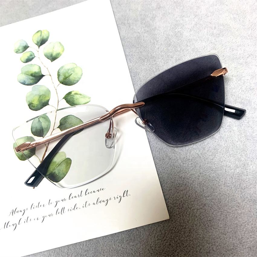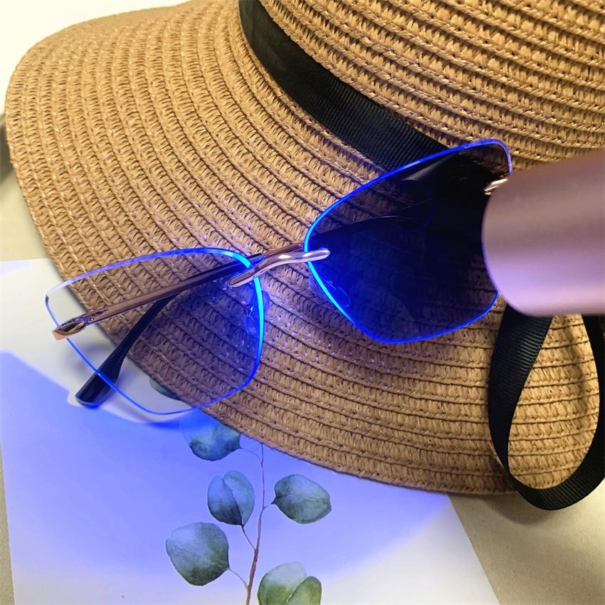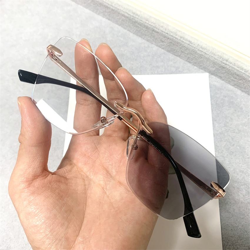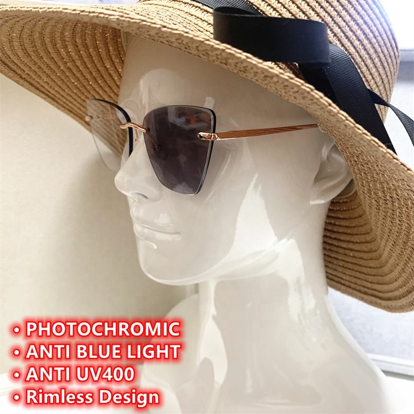 Lunettes Femme 2026 Anti-Lumière Bleue Optiques en Métal Doré, Monture Irrégulière Œil de Chat Sans Cadre, Photochromiques Anti-Reflet