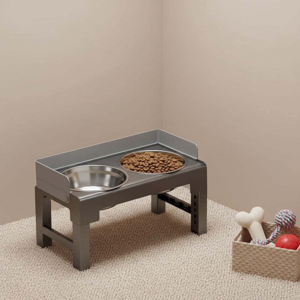 Anti-Choke Raised Dog Feeder Adjustable Height Pet Bowl Stand Non-Slip Double Bowl for Dogs Cats