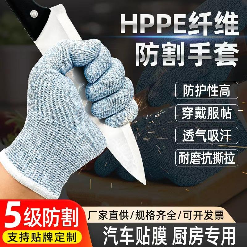 Gants anti-coupure Hppe niveau 5 non enduits pour la transformation alimentaire et la teinture des vitres de voiture
