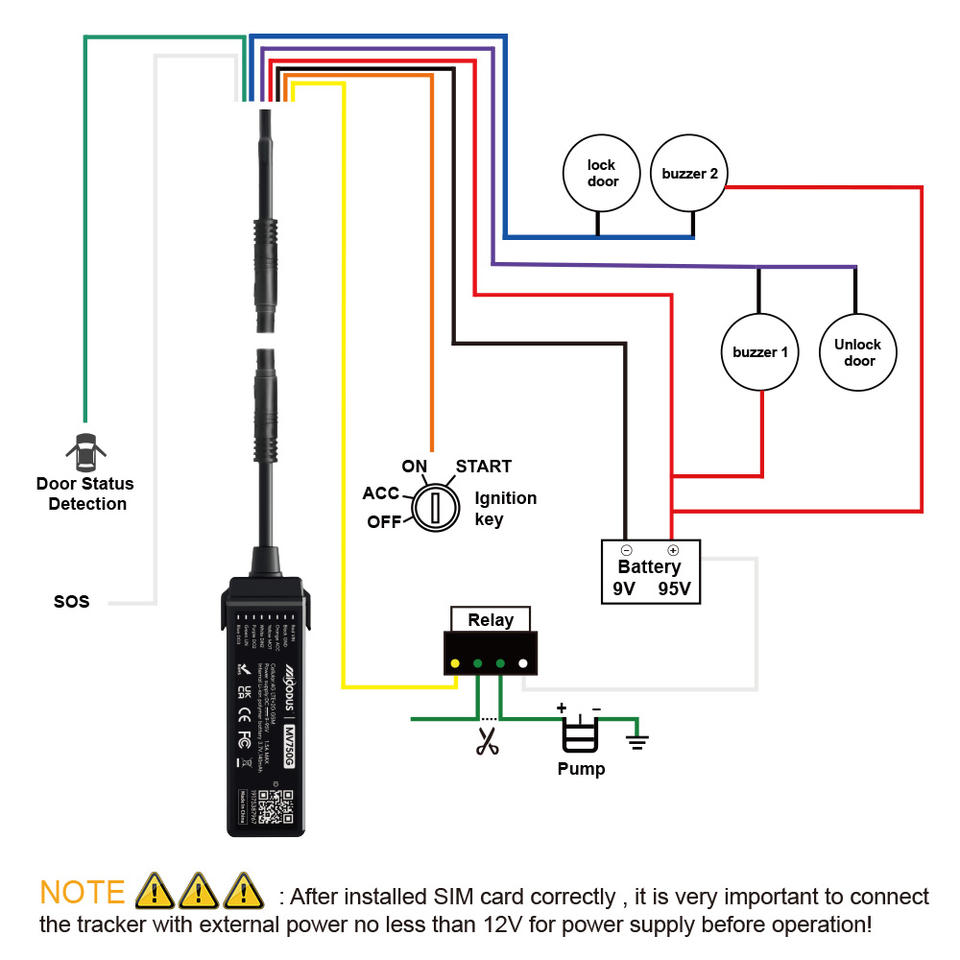 Télécommande, Suivi en temps réel, Appel sos, Serrure de porte/déverrouiller, Détection de brouilleur, Ip67 imperméable, Alarme par buzzer, Emplacement ba buzzer, La lecture de l'itinéraire de l'histoire, Alarme ouverte de porte, Alarme de survitesse, Alarme de vibration, Geofence, Alarme mouvementFonction