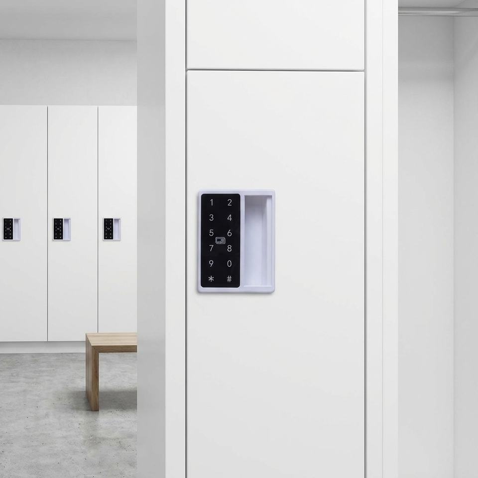 Serrure électronique à code numérique avec écran tactile en plastique anti-regard indiscret et détection micro-ondes pour casier de supermarché en bois ou en bois stratifié