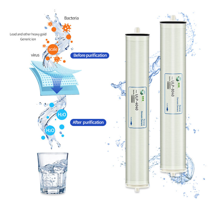 Élément de membrane d'osmose inverse anti-calcaire 4040 pour le traitement de l'eau dure dans les systèmes d'alimentation en eau des hôtels et des stations balnéaires