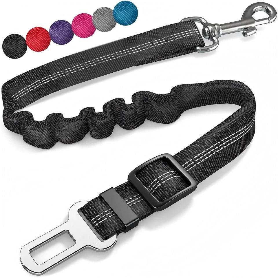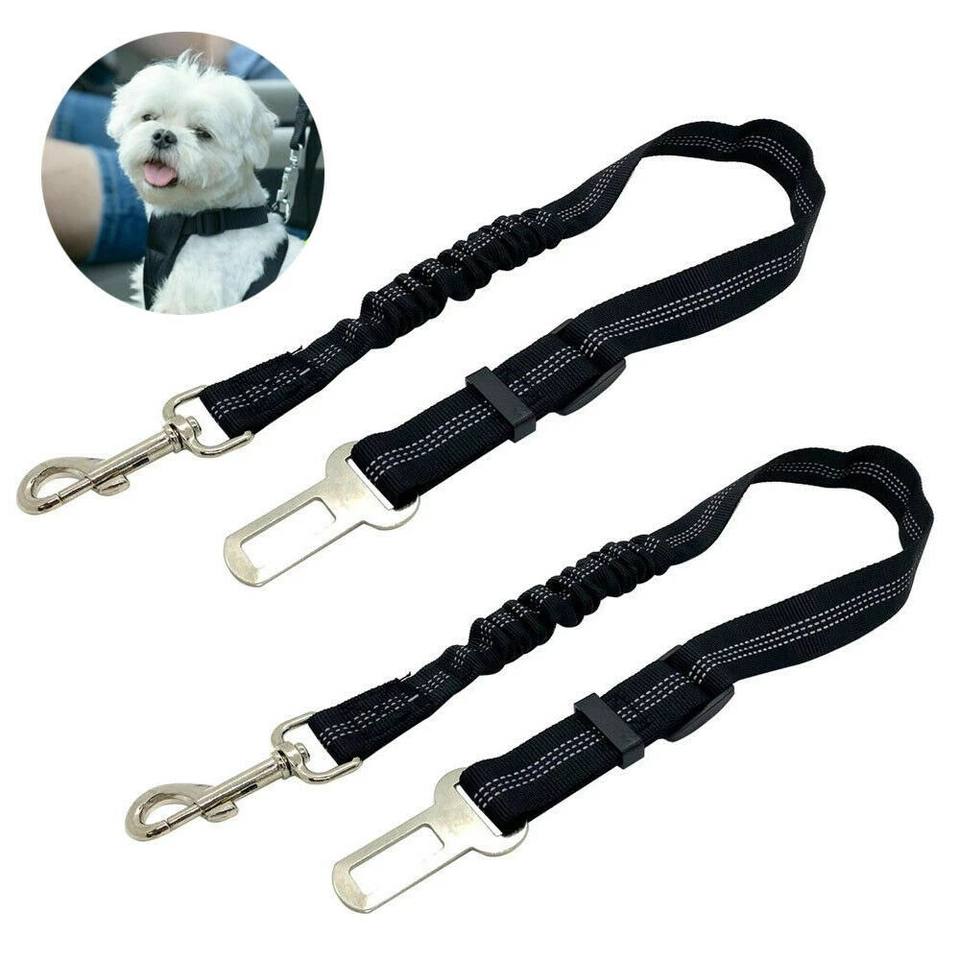 Anti-Choc Multifonctionnel Nylon Réfléchissant Réglable Bungee Laisse Élastique Chien Voiture Véhicule Ceinture de Sécurité Clip Noir avec Ceinture de Sécurité